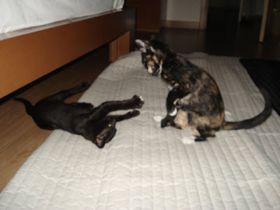"Sou uma gata preta e com muito charme, tenho as minhas patinhas pintadas de branco e sou uma profissional no ronronar e também sei brincar... Perfeita? Não sou.. mas estou lá quase :D"